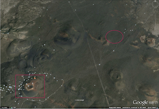 Here is the a screenshot of the Sunset Crater area from Google Earth. Sunset Crater is in the rectangle. The circle will be where my eruption is going to occur. (I'm not actually saying this is going to happen. This is me just theorizing.)